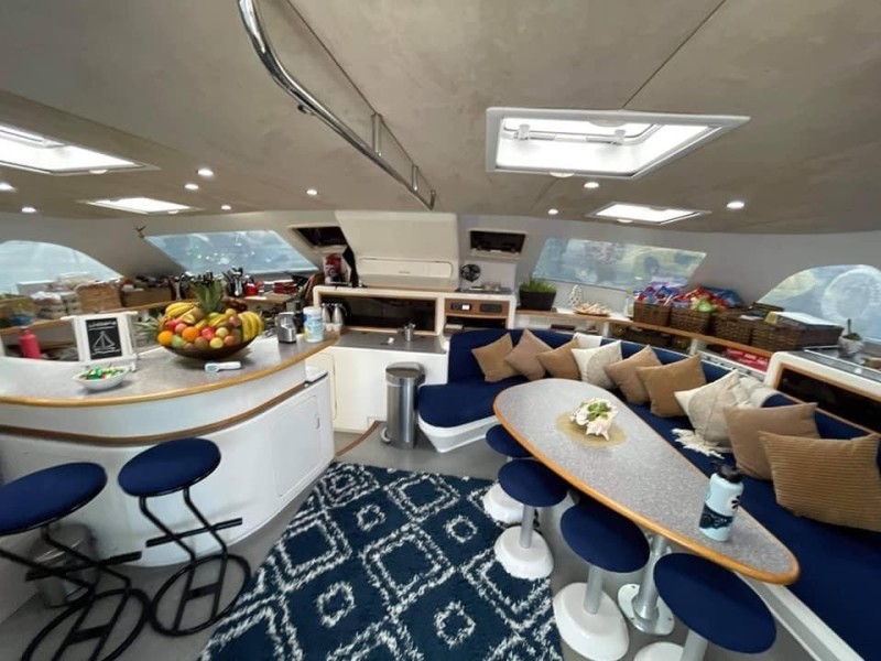 IDEAL VESSEL FOR LARGE FAMILY OR CREWED CHARTER BUSINESS5 double Guest cabins (sleeps 10 guests) – all en-suite with head and shower1 double crew cabin (sleeps 2)Additional head and shower are used for crew and as day head.Large Salon – with table that seats 10 guests, full Galley “up” serving bar counter, Nav station, additional seating.Large cockpit space with additional aft deck – large forward deck area.Many upgrades, and new equipment – see listing brochure.Professionally maintained by local management company.Lots of water toys included.This Voyage-58 has been set up to be a luxurious Crewed or Private charter catamaran. She is also ideal for a large family, sleeping 12 comfortably, or as your private getaway island with all the comforts of home. She has five en-suite double guest cabins, plus a separate double crew cabin (or additional guest accommodation) with separate head and shower – this is also used as the day head.Her complete Galley “UP” also serves as a serving counter or bar in the Salon.